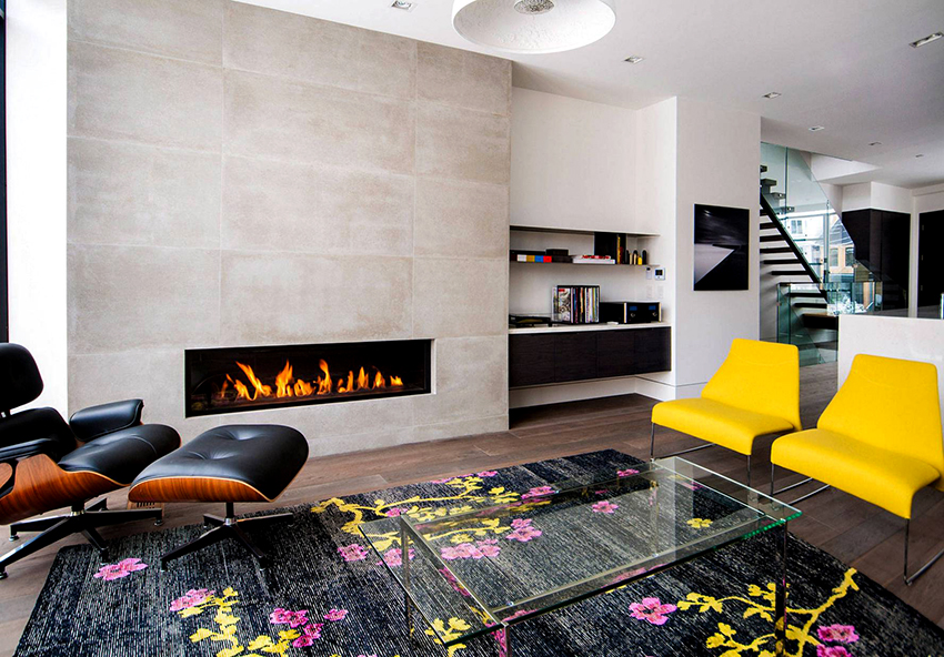 Many homeowners stick to rural interiors that are characterized by simplicity. However, the Alpine chalet style is very popular. A fireplace with a TV zone, which is usually placed directly above it, will perfectly fit into such an environment.