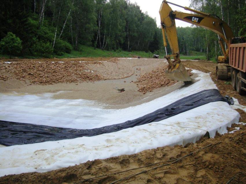 When forming a summer cottage and constructing various water bodies on it, the use of geotextiles can be very much in demand. Ponds, pools and other hydraulic structures require an effective drainage system. Retaining finely dispersed dirt, but perfectly allowing water to pass through, the geotextile sheet is designed to protect the waterproofing film from various mechanical damages.