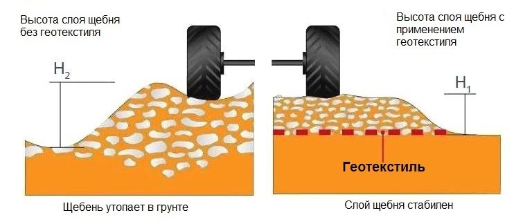 The ability of the web to filter out solid particles makes it possible, when using it, to avoid premature washing out of sand, gravel and cement from the roadbed. This prevents the formation of potholes and sinkholes, which extends the service life of the road by one and a half times, increasing the economic profitability of construction.