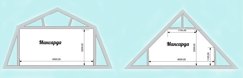 - Broken line. This roof is also called a mansard roof. The cut looks like a pentagon. The slopes are, as it were, refracted in relation to the base. This design leaves a large attic space, which makes it possible to arrange an attic floor.