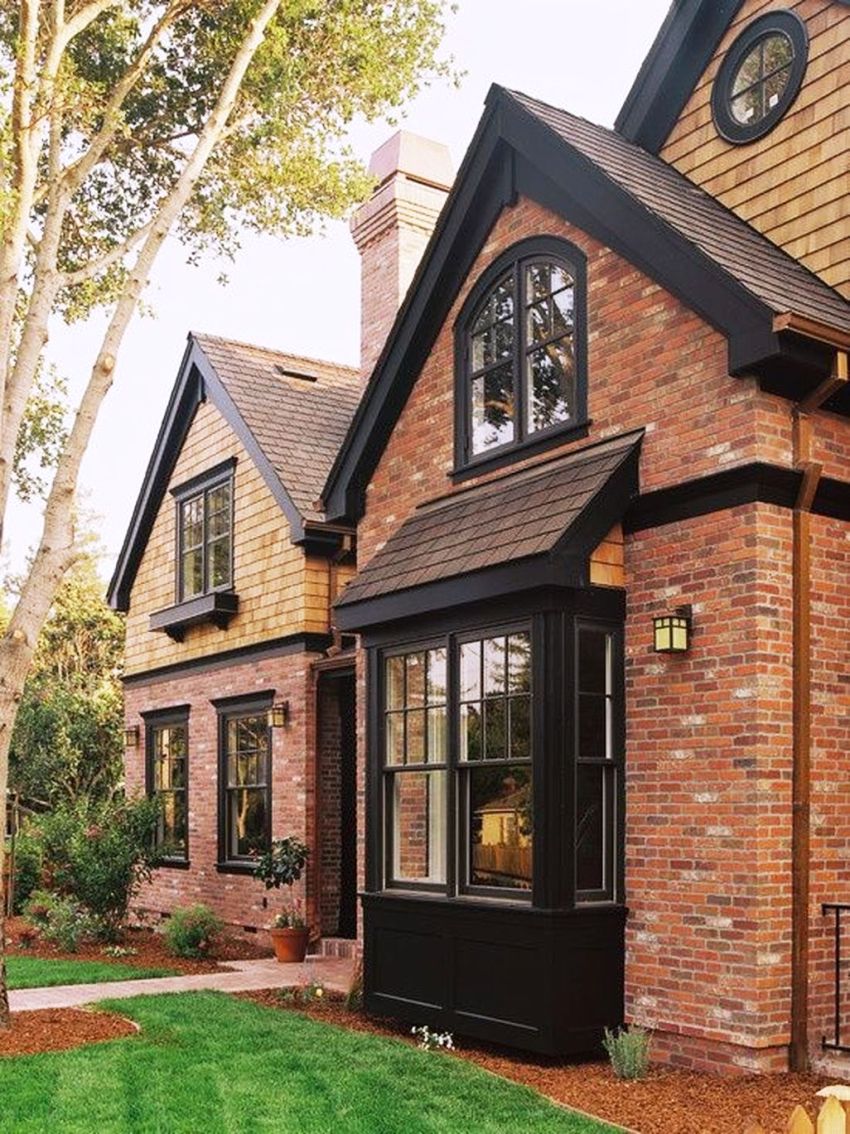 Brown brick houses look beautiful in the Gothic style. Dark colors are ideal for this type of structure. A fairly popular solution is color contrast, which is achieved through the use of two or more shades of brick.Such structures can contain various stone inclusions and areas covered with plaster.
