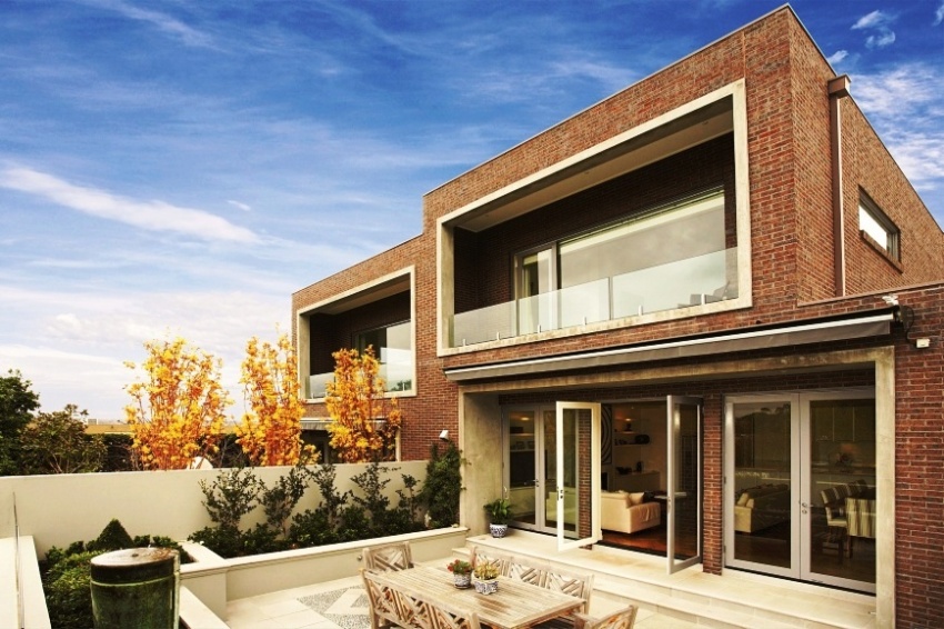 Facade of a brick house with a terrace: the advantages of a similar layout