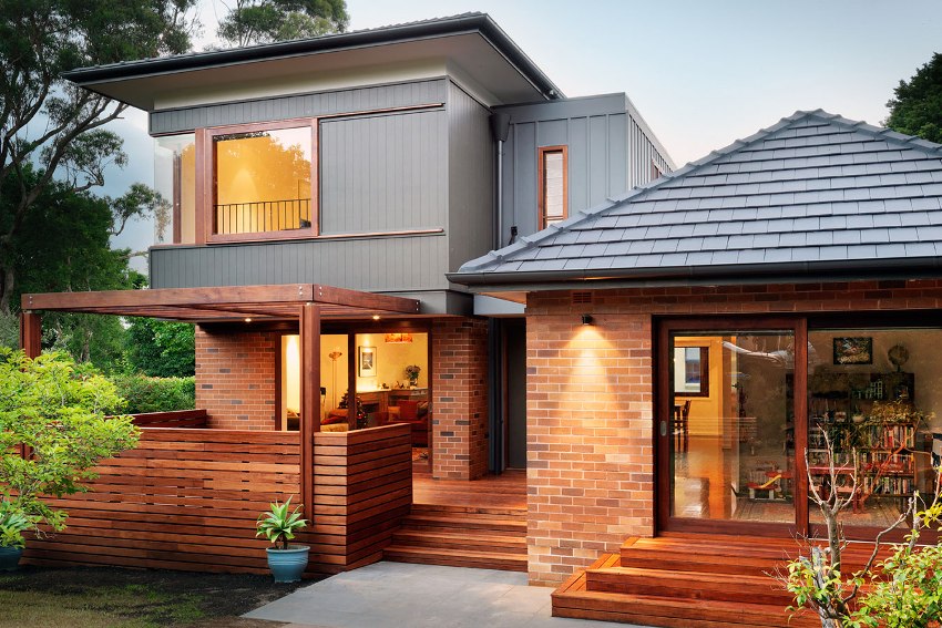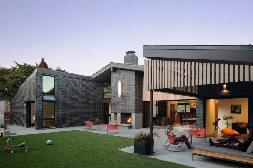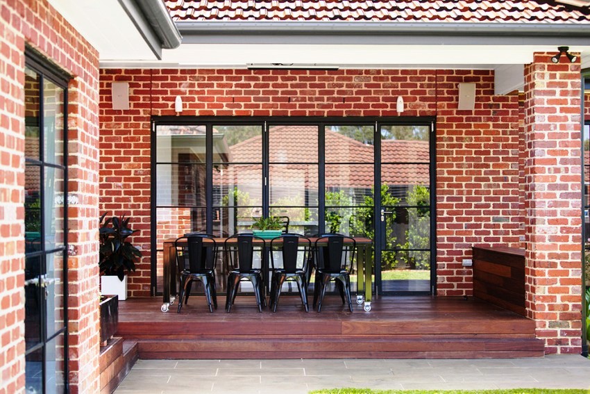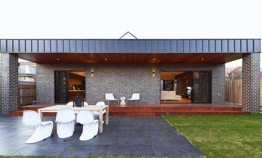 Houses made of bricks can have a terrace. This is an annex, located on a raised base and representing an open or closed area. This option is ideal for couples with children. The terrace can be filled with furniture and adapted as a relaxing place for lunch breaks and meetings with friends.