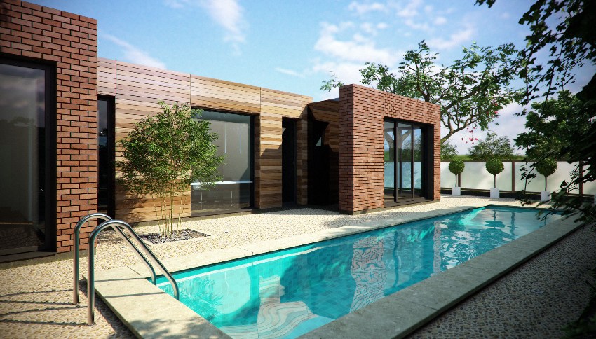Most of all, this architectural direction is suitable for one-story buildings. Photos of beautiful one-story brick houses made in a minimalist style make it possible to appreciate its advantages.