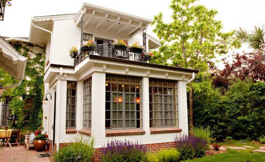 During construction, various ideas are likely to be implemented. The brick building can be supplemented with outbuildings. For example, such houses are often equipped with protruding balconies.