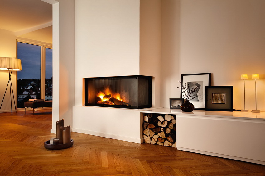 Interior Design living room with fireplace in modern style