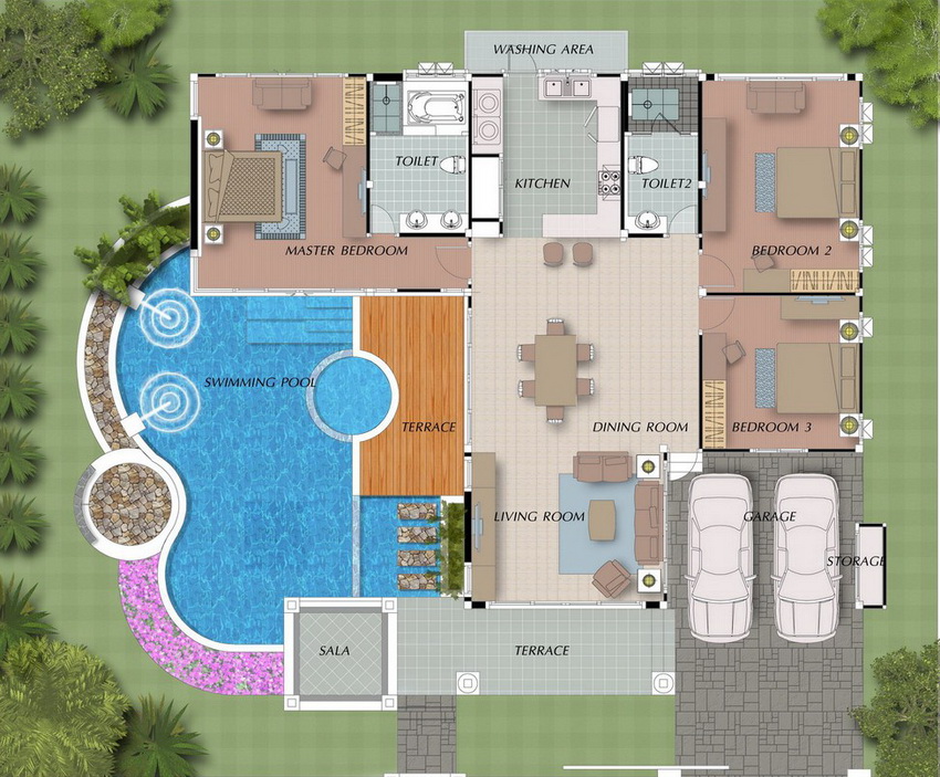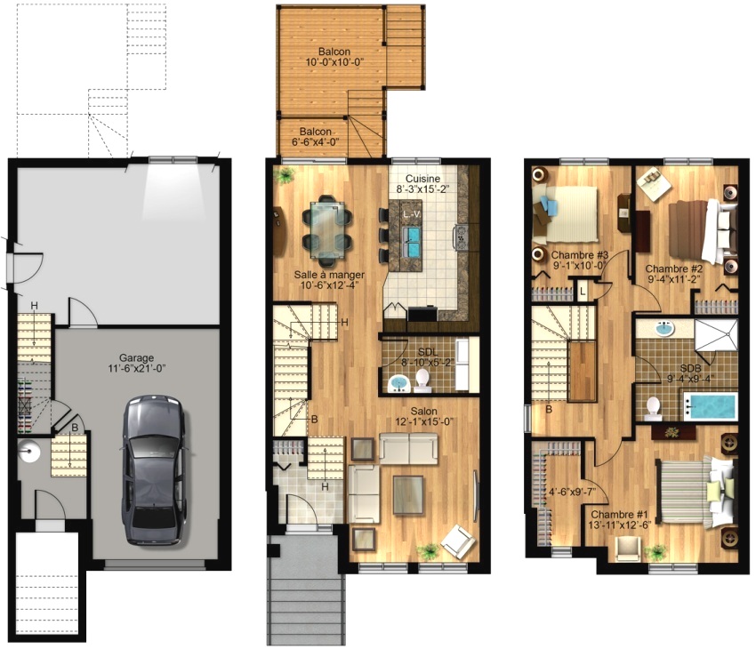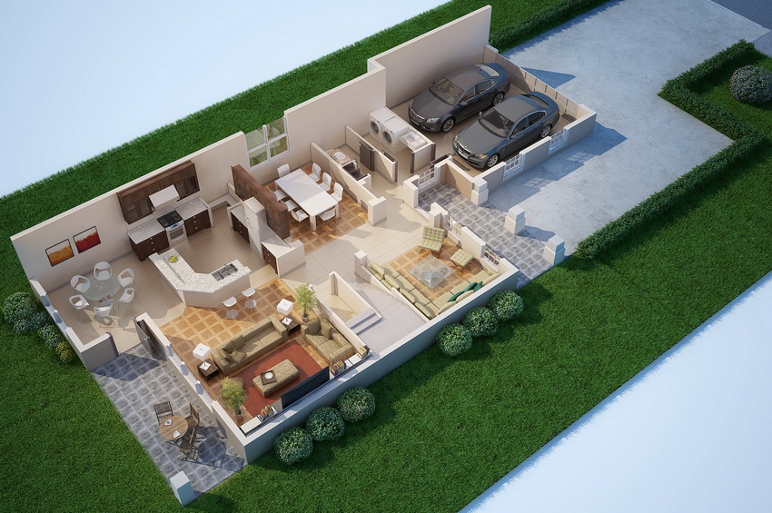 Layout houses with built-in garage
