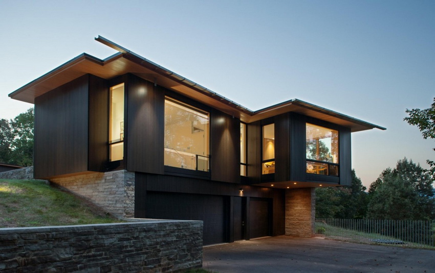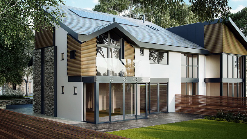 A cottage on a hill, subject to the correct layout of the rooms, will make it possible to achieve significant savings on heating and electricity. Sufficient penetration of sunlight into the premises will ensure constant comfort. By installing solar panels, you can collect natural energy and use it to heat a building.