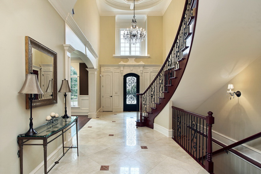 The main staircase, designed as a key element of the interior, is more often placed in the living room-hall.