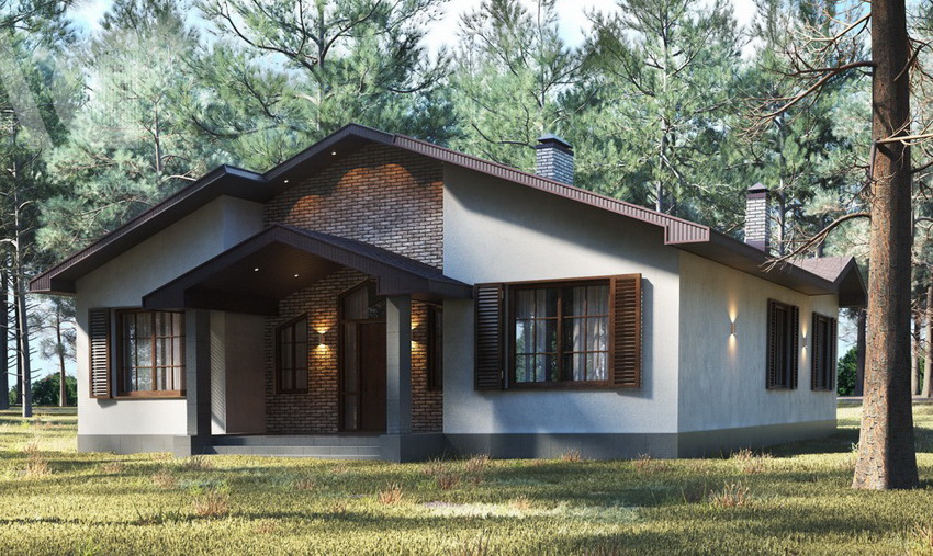The layout of premises in one-story cottages has a horizontal orientation and practically does not differ from city apartments. One part of the house is reserved for residential-type rooms. For this, the eastern and southern zones are used. The western and northern parts of the building are occupied by utility rooms.