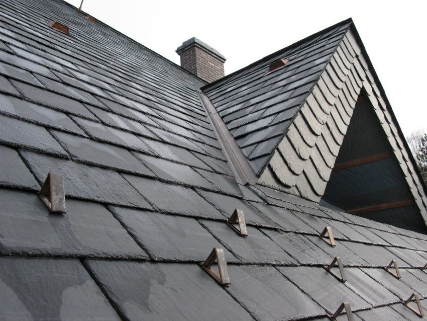 Slate roofing is the most expensive of the listed types of roofing materials. Its properties and appearance are due to its natural origin. The material looks like flat plates of natural slate. Each plate is processed manually, ensuring the required dimensions: the thickness is 4 mm, and the weight is 25 kgm2, the width is 15 and 30 cm, and the length is 20 and 60 cm.