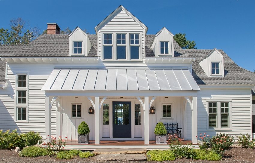 The porch is the face, the calling card of the house. It is most often used only for decorative purposes, but sometimes it is loaded with additional functionality. Quite often they equip a porch with a visor in a private house, the photos of buildings presented in this article demonstrate several options from various materials. Small, neat entrances to the house with a small visor and large porches with an equipped spacious canopy.