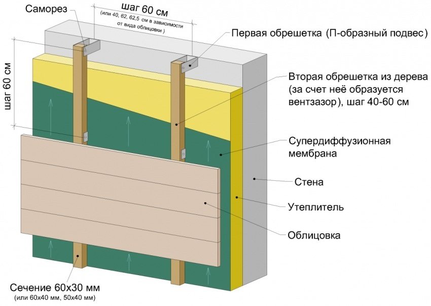 Wooden bars are nailed vertically every 1 m. The same grooves should be obtained. Their width should be the same as the width of the foam boards. In this case, the plates must fit into the gutters very tightly. Waterproofing is attached on top of the entire structure with a stapler. It should go around all the lighthouses.