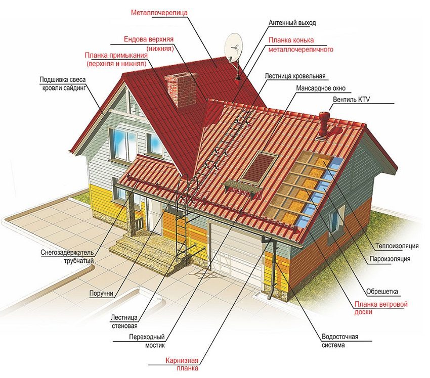 In order to cover the roof with metal roofing material, it is necessary to use several types of slats: