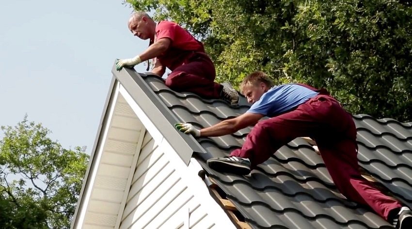 In the process of roofing work, great attention should be paid to safety. The ladder or scaffold must be securely anchored and not dangerous. It is most convenient to attach a wind bar for metal tiles from the scaffolding installed along the gable of the building. This will allow you to move freely along the entire length of the ramp edge. Before attaching the additional element, it is worth to sew up the lower part of the crate hanging over the pediment with facing material. This will allow you to avoid inconveniences in the future, since the installed bar can interfere with this process.