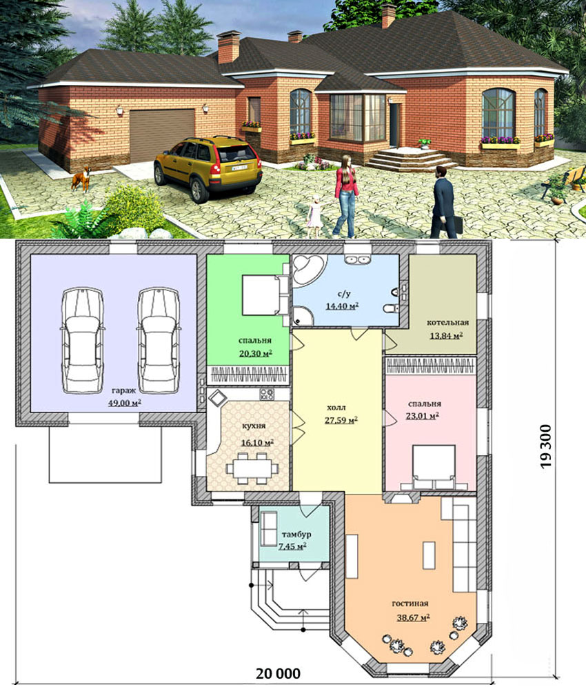 Examples of typical projects of one-story brick houses