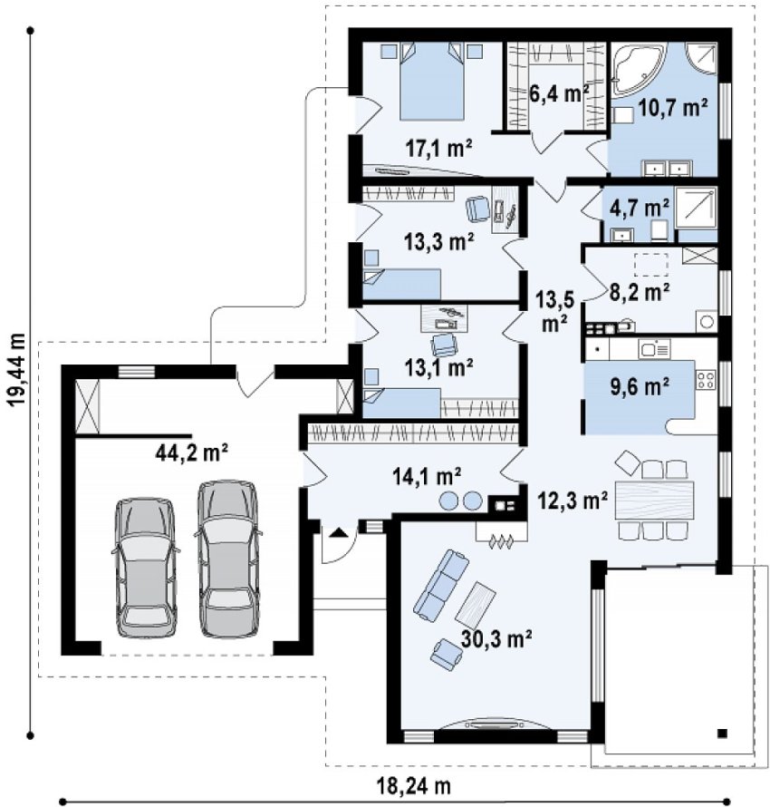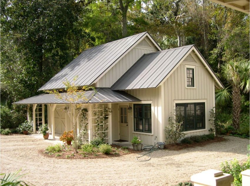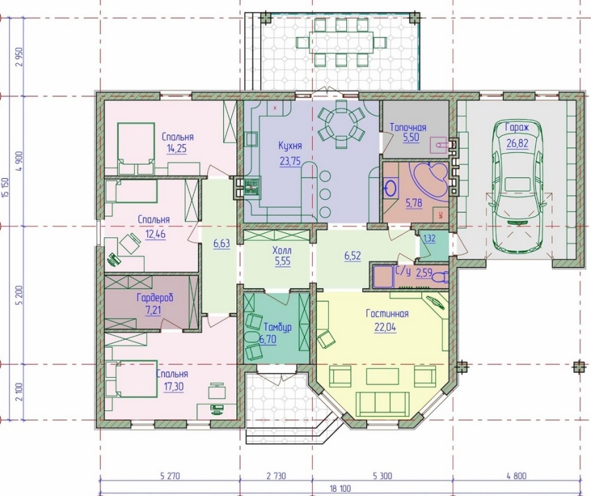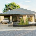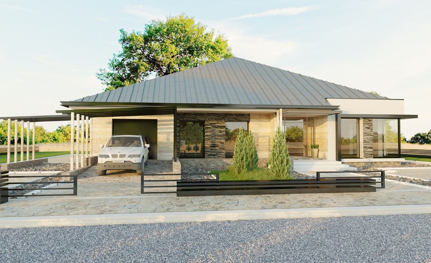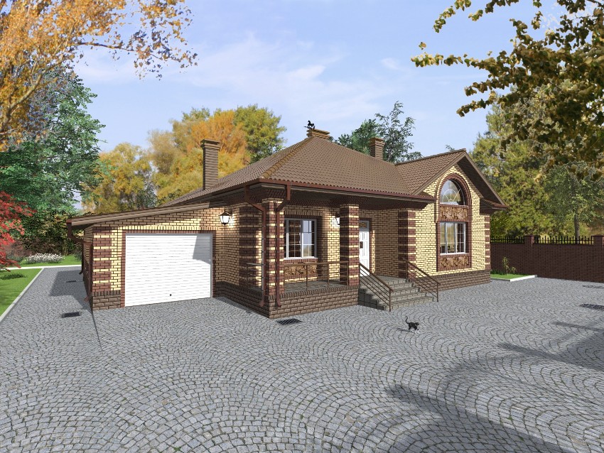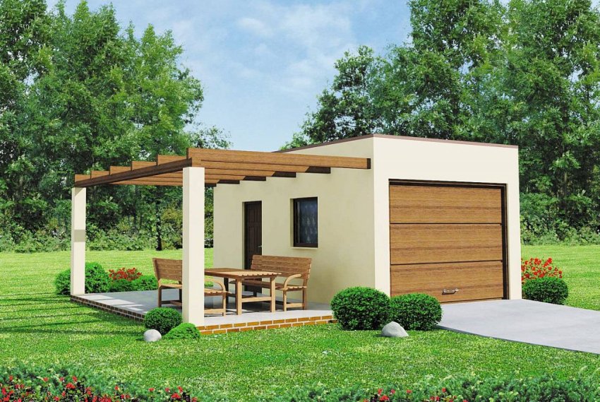 An important advantage of a one-story house with a combined garage is that this combination saves territory