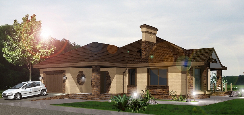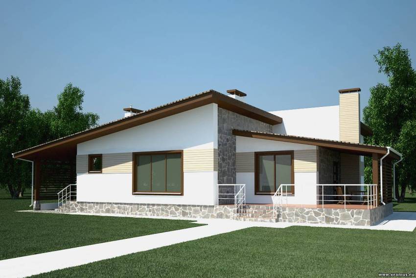 Features of typical projects: one-story houses with a garage and a terrace