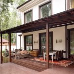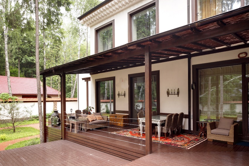Useful advice! If the terrace is located on the south side of the house, it is advisable to install a canopy with a removable structure. In regions characterized by sultry summers, this element is simply necessary, since an excessive amount of sun will cause overheating of the premises. If necessary, such a canopy can be removed.