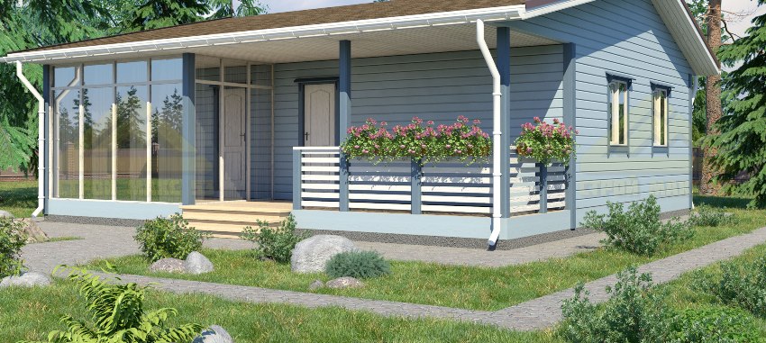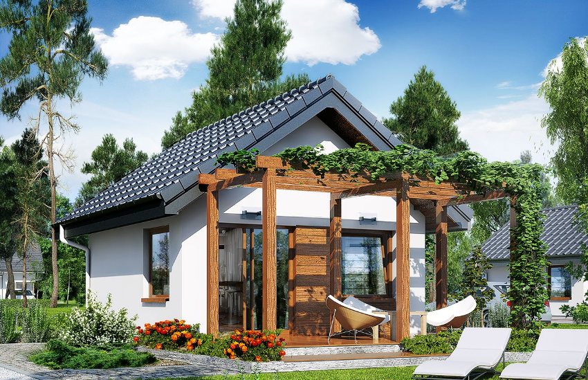 Ready-made projects of one-story houses with a terrace will suit exactly those people who want to enjoy country life and use all the advantages of a private cottage