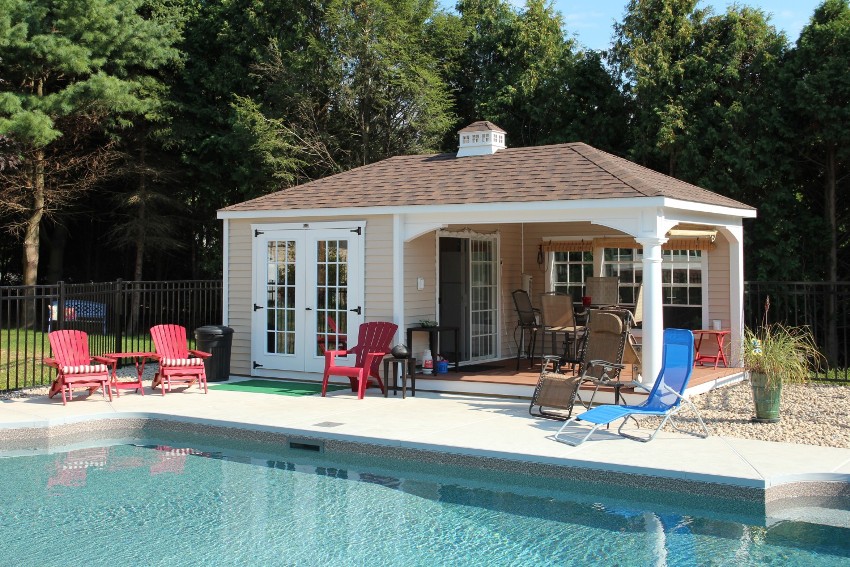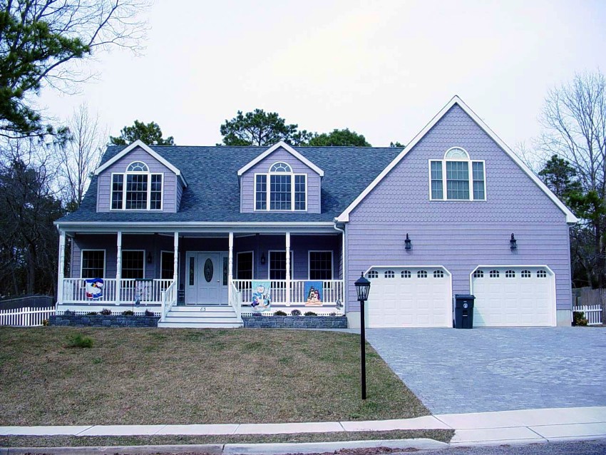 American-style house designs most often attract the attention of owners of spacious plots. These solutions are ideal for large families. A must-see attribute of American-style buildings is a carefully arranged local area with manicured lawns. A clear division of space into functional zones is welcomed: a playground, a place for recreation, a pool, a barbecue area.