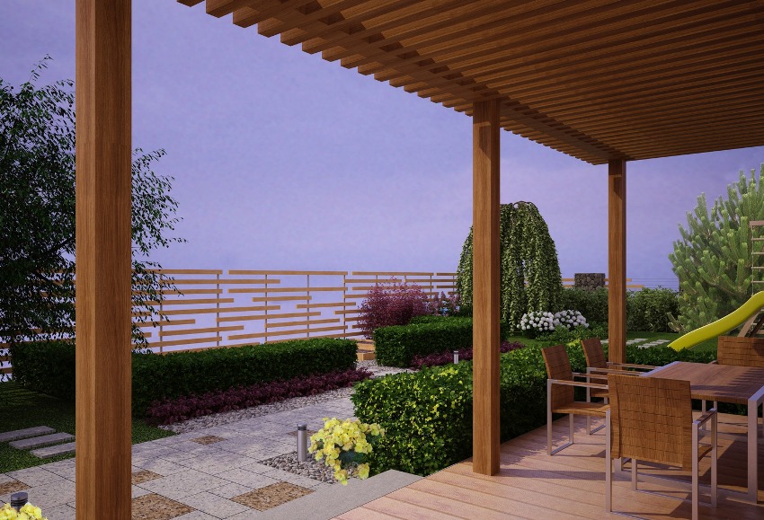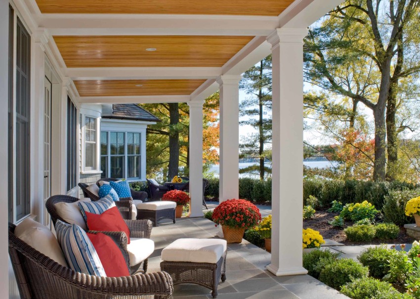 If you include a terrace in your home design, you can create a close connection between the building and the surrounding landscape. Moreover, the owner of the building can independently decide where his gaze will be directed: to an apple orchard, a river or lake, a forest, etc. It is much more convenient to enjoy the beautiful landscape from the terrace than from the window.