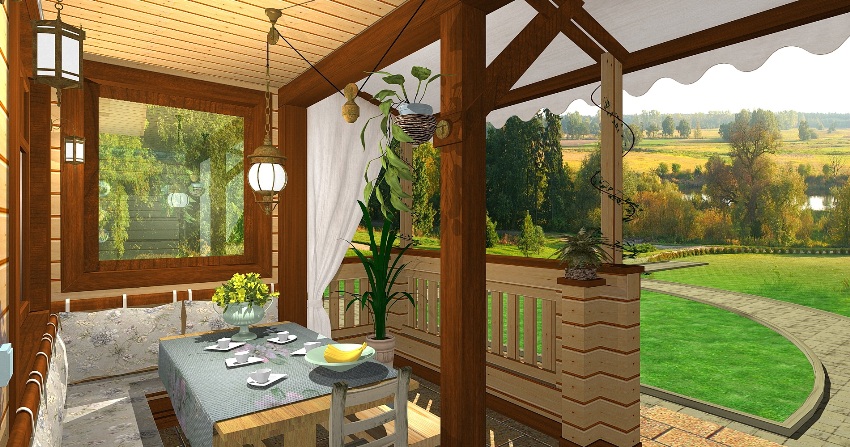 A veranda is a platform that is bounded on all sides by walls. Unlike a terrace, which may look like an extension or a free-standing structure, this element is a structural part of the house. Such a room is not heated, nevertheless, projects of houses with a veranda and a terrace are widely used by developers, due to the presence of other beneficial advantages.
