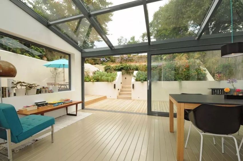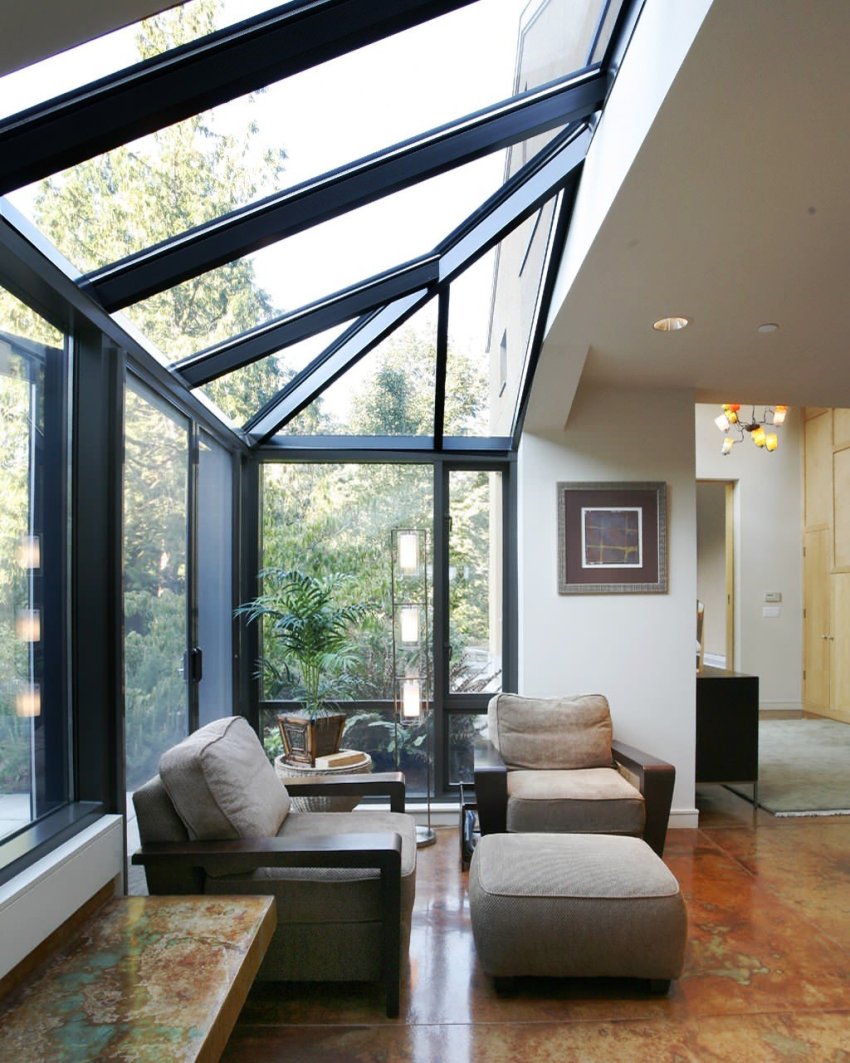 - good transmission capacity (up to 90% of the rays), due to which a sufficient amount of natural light enters the terrace, and also the effect of a closed cocoon is excluded;