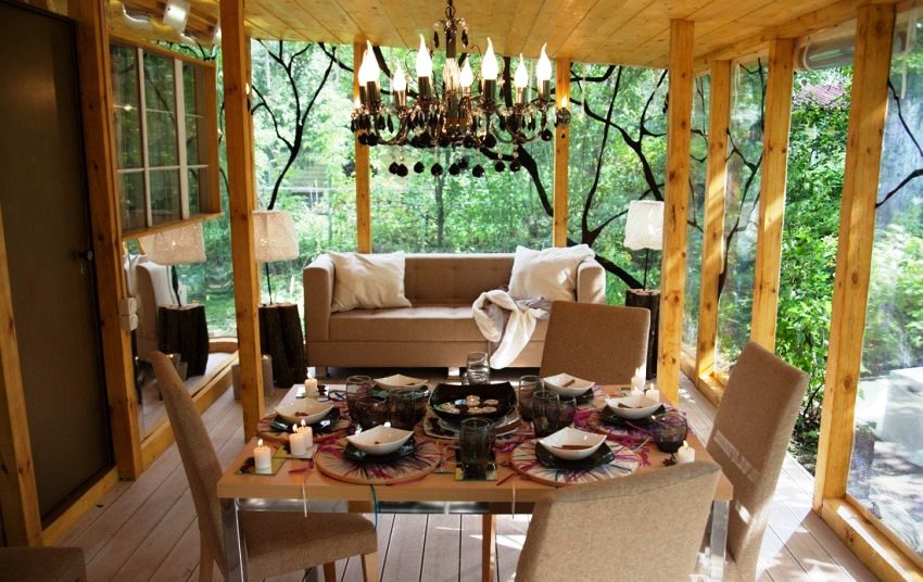 The veranda can be used for eating in the summer. In this case, it is advisable to place it against the outer wall of the dining room or kitchen. The home fitness room fits well into the veranda space. However, in this case, you should take care of the availability of a high-quality ventilation system. In addition, sufficient space is required for sports activities. Therefore, even at the design stage, it is necessary to designate the functions that the veranda will perform.