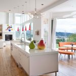 The layout encourages the preservation of open spaces. For this room, the kitchen, living room and dining room can be combined.