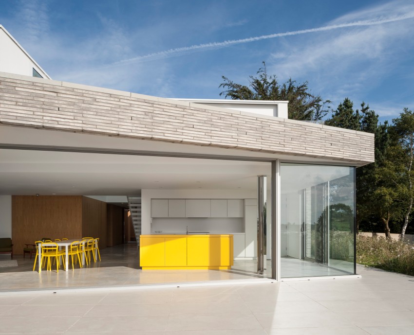 Most projects of one-story houses with a terrace have an additional exit from the living room or kitchen to the terrace, this is very convenient and almost always justified
