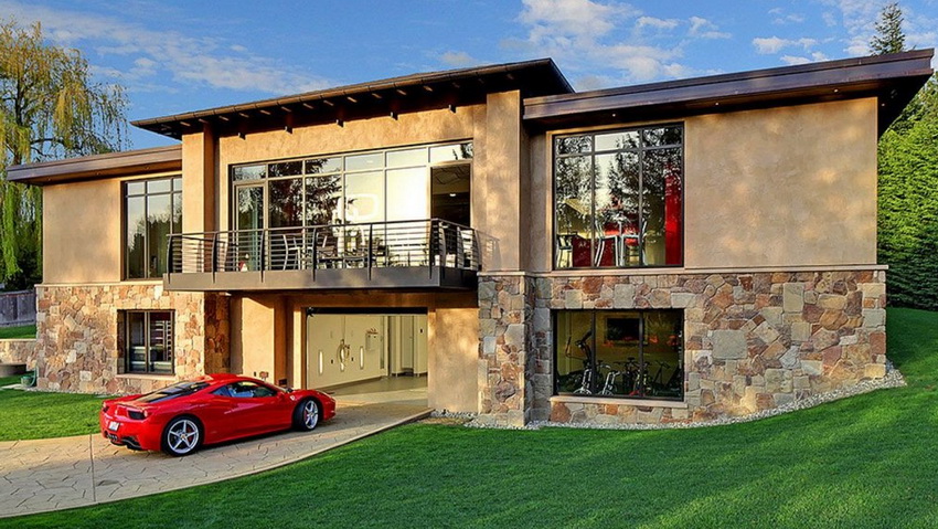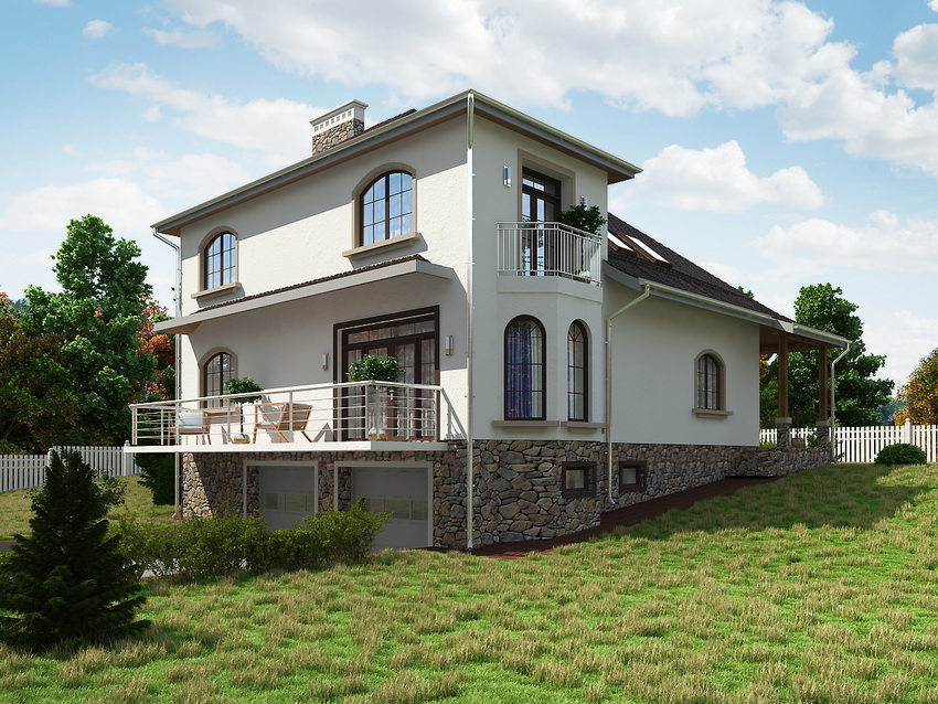 A small cottage with a garage in the basement is the choice of people seeking convenience, economy and comfort. Additional advantages of such a building are that you do not need to go outside to enter the garage. The temperature regime in the basement, even without heating, is usually much higher than in conventional garages, which contributes to better vehicle safety.