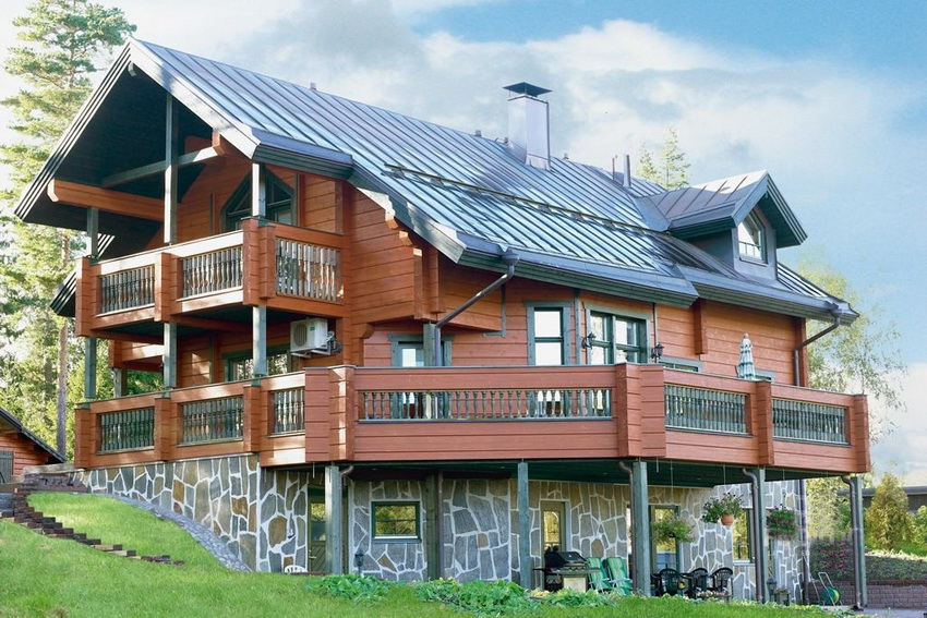Such a construction is a way out of the situation when you need to save money on the construction site, but increase the usable area of housing. In houses of this type, a varied arrangement of rooms and utility rooms is permissible. If a country cottage is being built, then they use a simple technology of a recessed foundation of a reinforced structure.