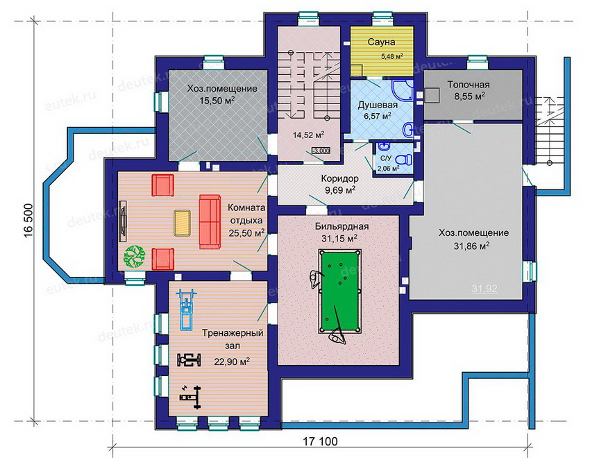 Another advantage of a house with a basement is its intended purpose. It can serve to accommodate not only living rooms, but also utility rooms. In modern construction, the design of recreation areas has become especially popular. Most often, the basement room is used to accommodate: