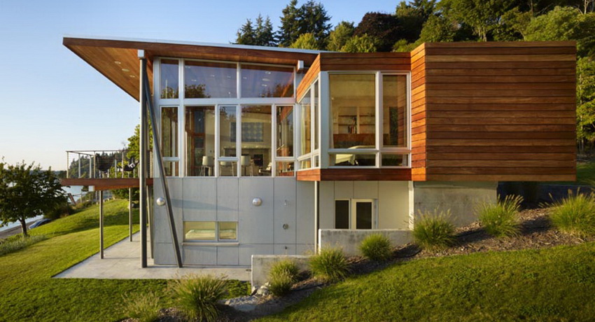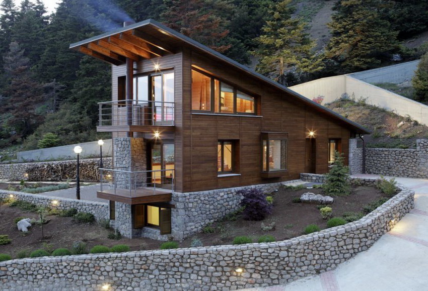 Important! There are no standard house designs on slopes and hilly surfaces. They are compiled individually, taking into account the features of the relief and the size of the construction site.