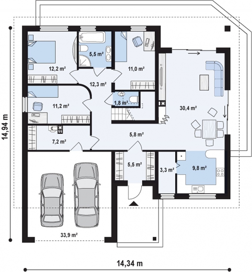 Since there is often not enough space on the site to build a separate garage, you often have to deal with the fact that the family has not one, but two cars at once. Of course, this is the most popular and convenient form of transport, but how can you solve the problem of storing and maintaining another car? Consider projects of houses with a garage for 2 cars.