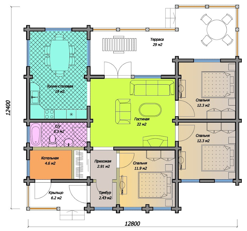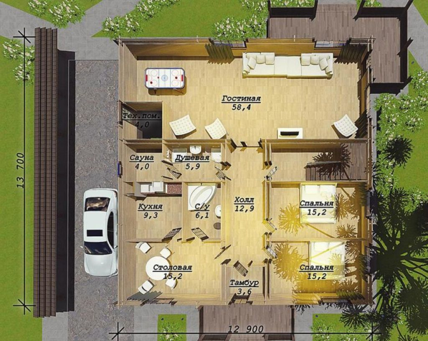 When drawing up projects of one-story houses and cottages, you need to pay attention to several points. When preparing such a plan, it is customary to distinguish between the residential and utility parts of the building. The following rooms are traditionally considered to be residential: