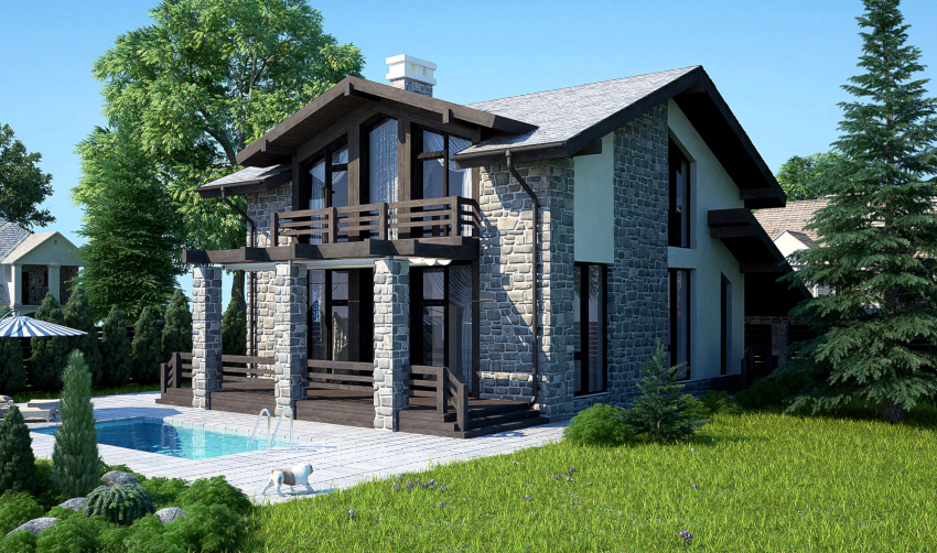 Another common material used in the construction of cottages is stone. This natural material has a rather high cost, but there is an artificial analogue, the price of which is much lower. At the same time, the technical characteristics of artificial stone are no worse. Buildings constructed from this material are distinguished by their presentable appearance, excellent heat retention and a long service life.
