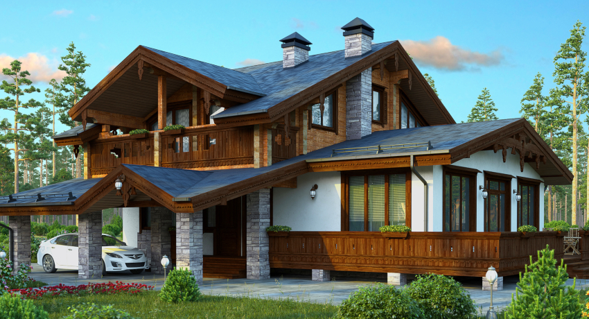 In the catalogs of cottage projects, there are often options for buildings made of wood. Wooden houses are environmentally friendly structures and can be created from various types of raw materials. The material used is rounded logs or glued beams, which appeared relatively recently.
