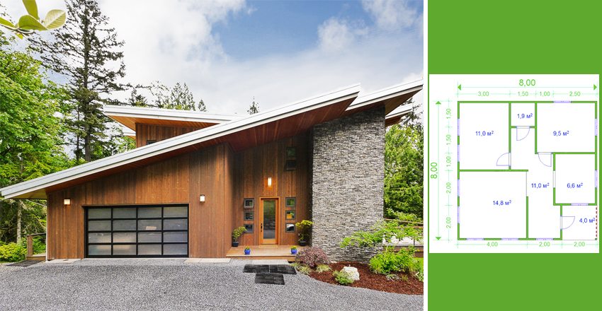Even typical projects of one-story houses up to 100 sq. M. Can add aesthetics and perfectly complement any landscape. And structures with an individual and unique design bring much more benefits. That is why one-story houses with limited area are so popular among developers. Such designs completely solve the problems of building suburban areas.