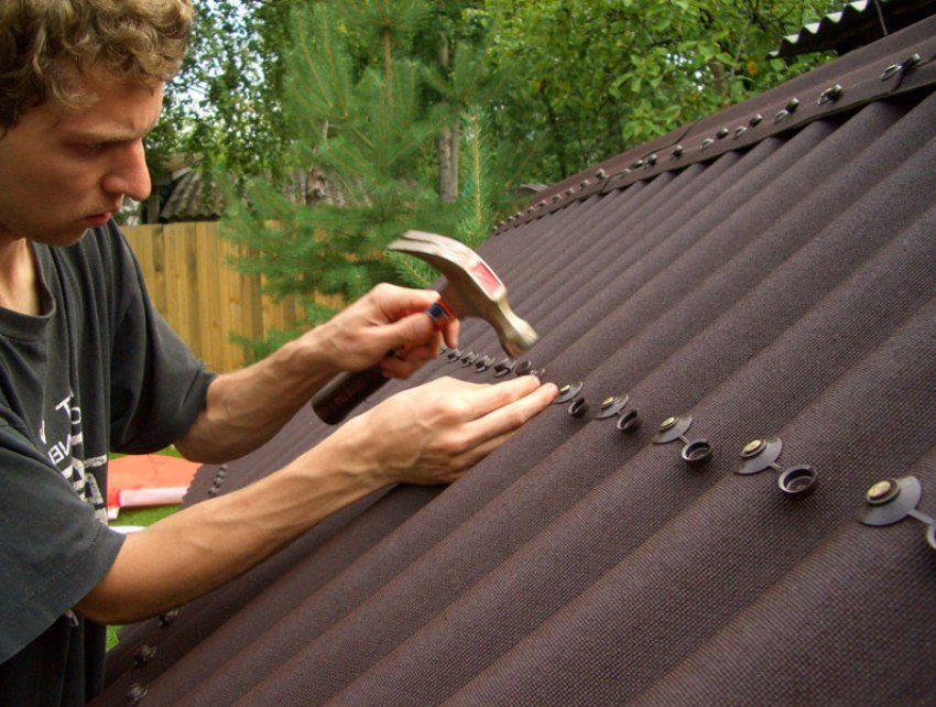 The final stage in the arrangement of an ondulin roof is the installation of a ridge element, a valley and an end strip