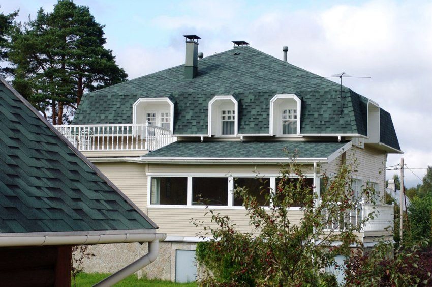 Soft roof shingles with a steep slope are more beneficial than other materials. With its natural grip, it can be installed on roofs at a 90 ° angle. There are no complicated roof configurations for bitumen material. Bituminous sheets can be laid on complex curved surfaces with high precision of joining and adhesion. In this respect, such material cannot replace any other product.