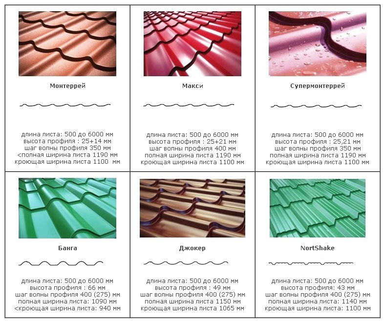 Depending on the geometric features of the profile, the metal tile is divided into several types with beautiful names: