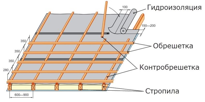 After the crate is ready, it is time to waterproof the roof of the house under the metal tile. This stage cannot be excluded from the whole process. It protects the rafters from moisture that can get under the coating, and also prevents condensation from accumulating on the inner surface of the sheets.
