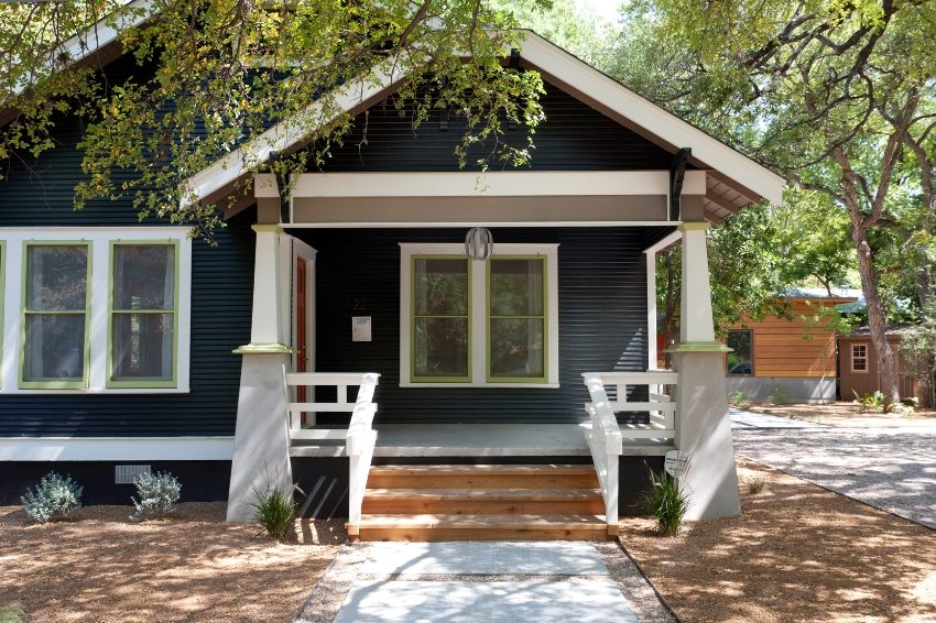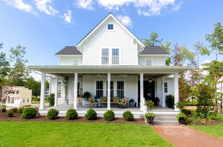The general style of the building also matters. It can be a traditional Russian log house with a natural-colored wooden porch or a real estate in the Catherine's Empire style with wide stone steps in front of the entrance. Porches in the Mediterranean style are also popular, featuring light-colored wood and light carved railings.