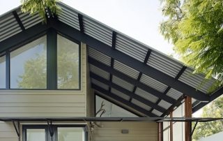 Canopy attached to the house: photo of cantilever canopies and support structures. Polycarbonate canopy installation, pile pouring, frame installation, roof sheathing.