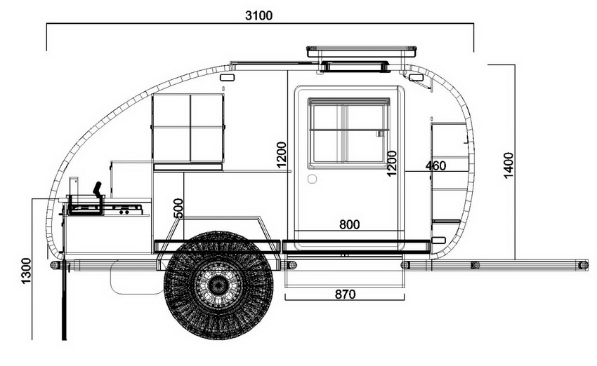 To organize the sleeping area, the space in the trailer itself is used, the rest of the rooms are arranged under an awning, which is installed on the ground. The complete set is usually represented by a minimal set: a sink and a gas-powered stove. Water enters the sink thanks to a compact submersible pump, which is lowered into the water tank.
