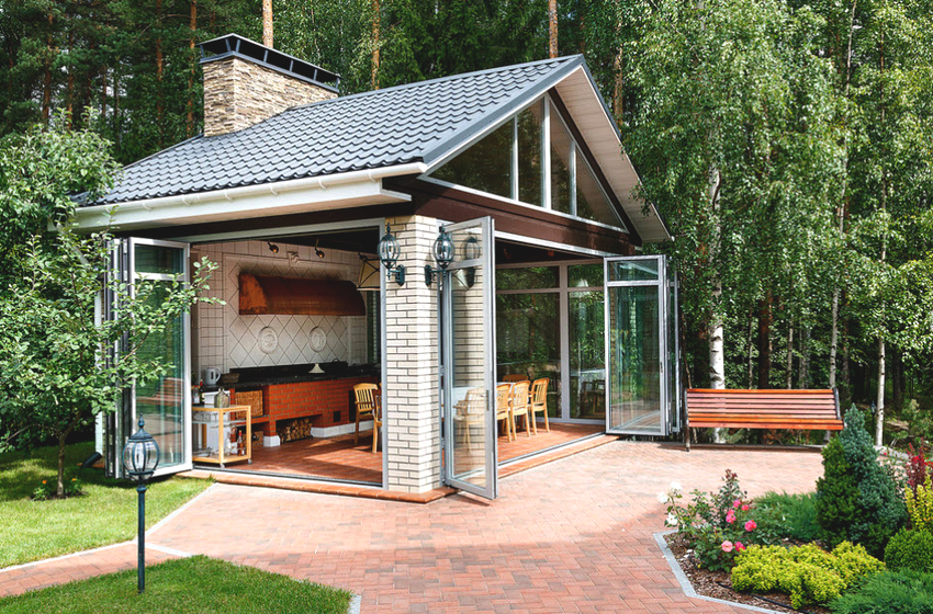 Consider the optimal distance from home. It is much more convenient if the gazebo will not be located far from the house, especially if it is not equipped with a minimum kitchen. In this case, you will have to spend a significant amount of time moving between objects.