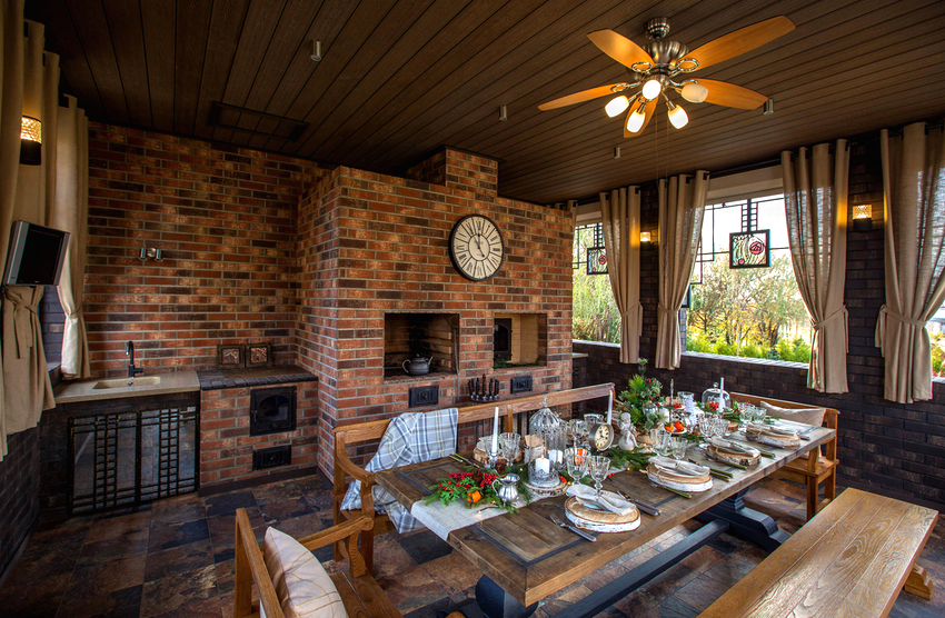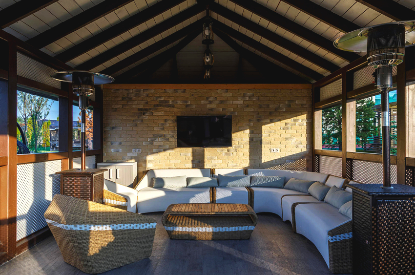 - A place for gatherings and gathering of guests. For convenience, such gazebos are equipped with full-fledged summer kitchens. A good option is to install a brick oven in the gazebo, which will fill the room with warmth and comfort in case of bad weather.