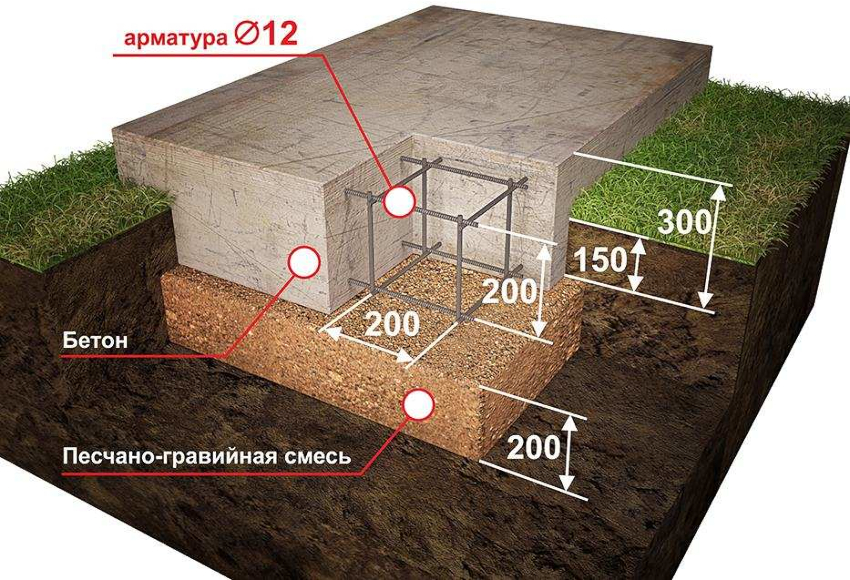 If swampy or loose soils are common on the site, as well as in the case when the very place where the installation is planned is located on an uneven area, it is best to organize the construction of a pile foundation. This type of foundation will make it possible to do without leveling the site.To protect the facing material from damage resulting from prolonged contact with the soil, it is required that the foundation rise above the ground by at least 20 cm.After pouring the concrete, the base must be allowed to dry for 2 weeks, after which the construction can be continued.